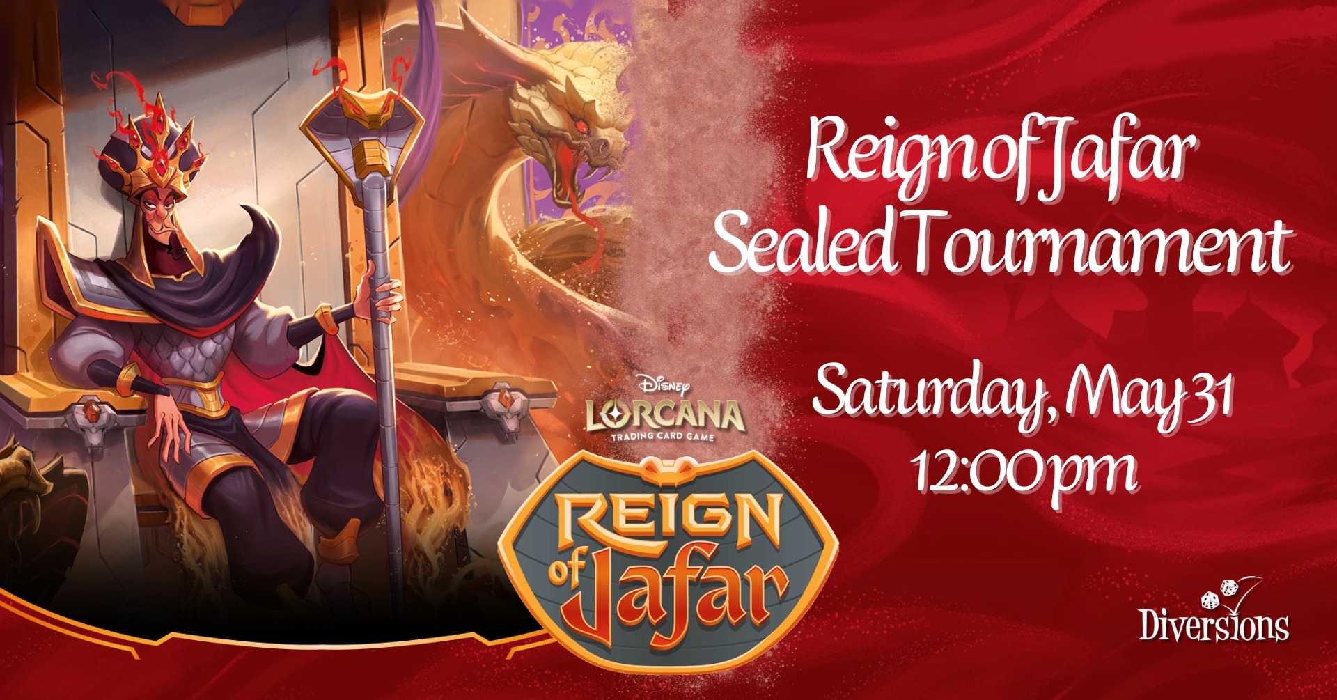 Join us for Disney: Lorcana – Reign of Jafar release weekend! We are hosting a Sealed Tournament to celebrate! This sealed tournament will run from 12:00-4:00PM
