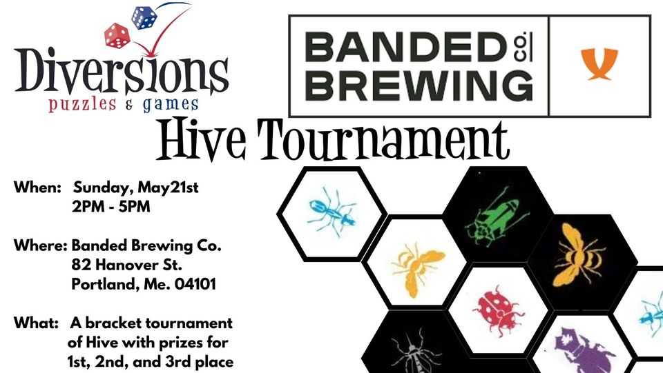 Join us at Banded Brewing’s Tasting Room in Portland for a bracket style tournament of the ever popular chess-like game Hive! Entry is free and registration will be day of at the event with prizes for 1st, 2nd, and 3rd place winners!