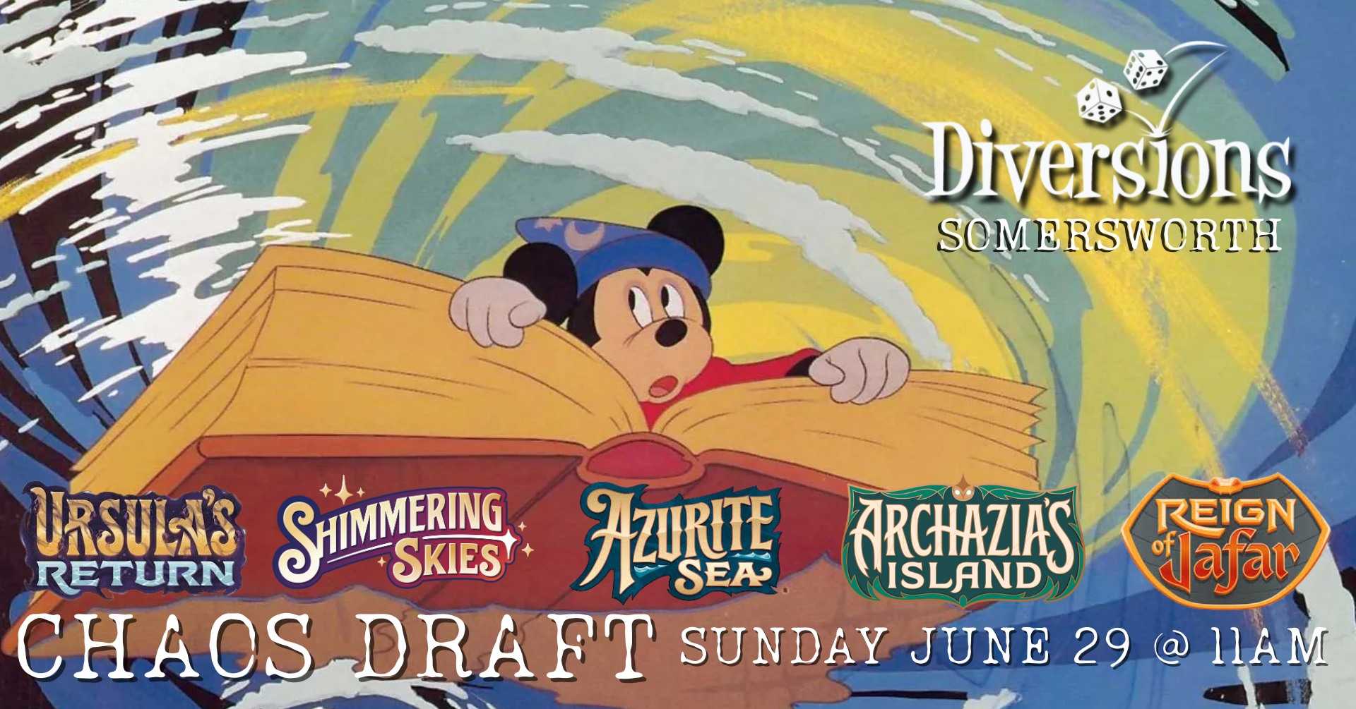 Join us for a Lorcana Chaos Draft! Each player receives 5 booster packs – one from each set (Ursula’s Return, Shimmering Skies, Azurite Sea, Archazia's Island and Reign of Jafar).…