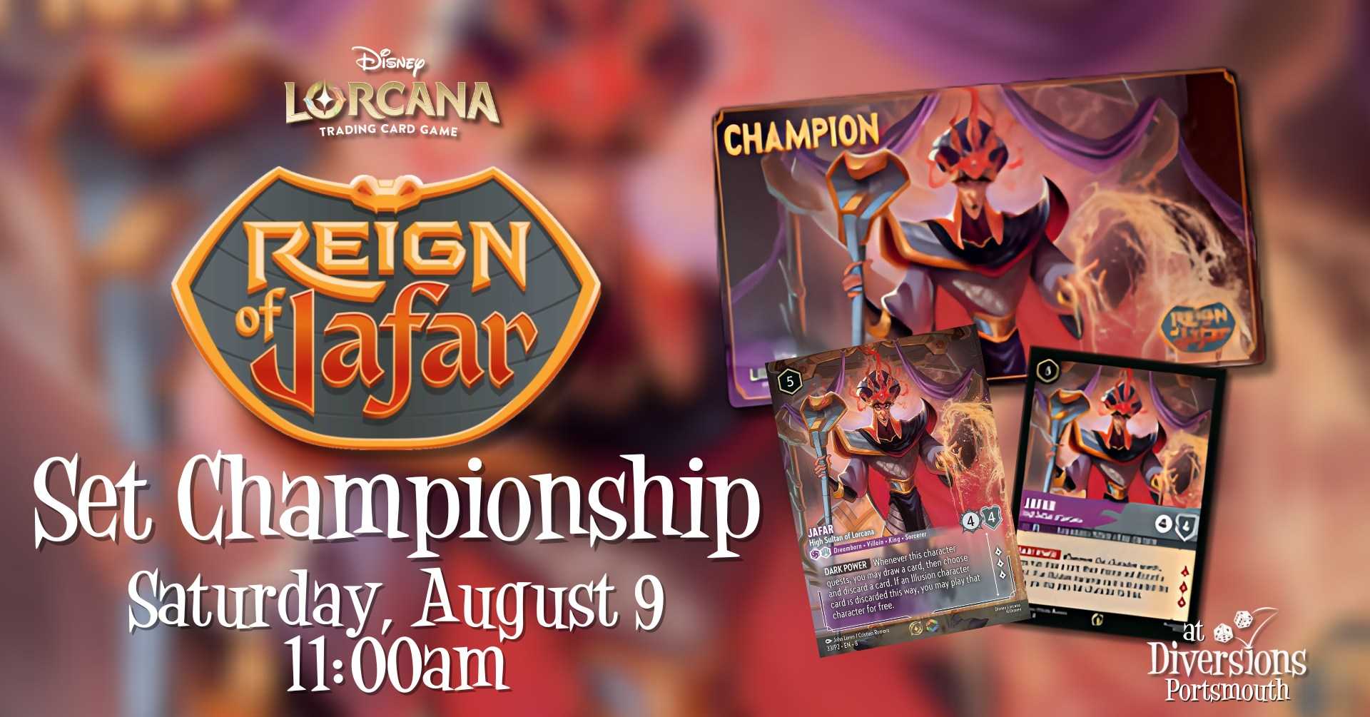 You can become a champion! Join us on Saturday, August 9 for our Disney Lorcana: Reign of Jafar Set Championship! **Registration & Check-In** Play may register themselves on Ravensburger Play…