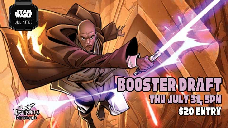 Join us for a Star Wars: Unlimited Draft! This event will be held Thursday, July 31 @ 5:00pm. Entry is $20 per person. Pack prizing will be awarded to players…