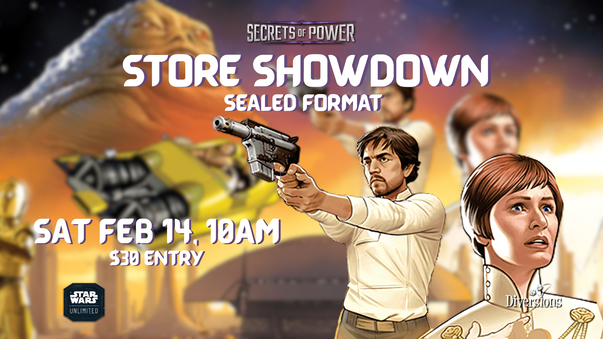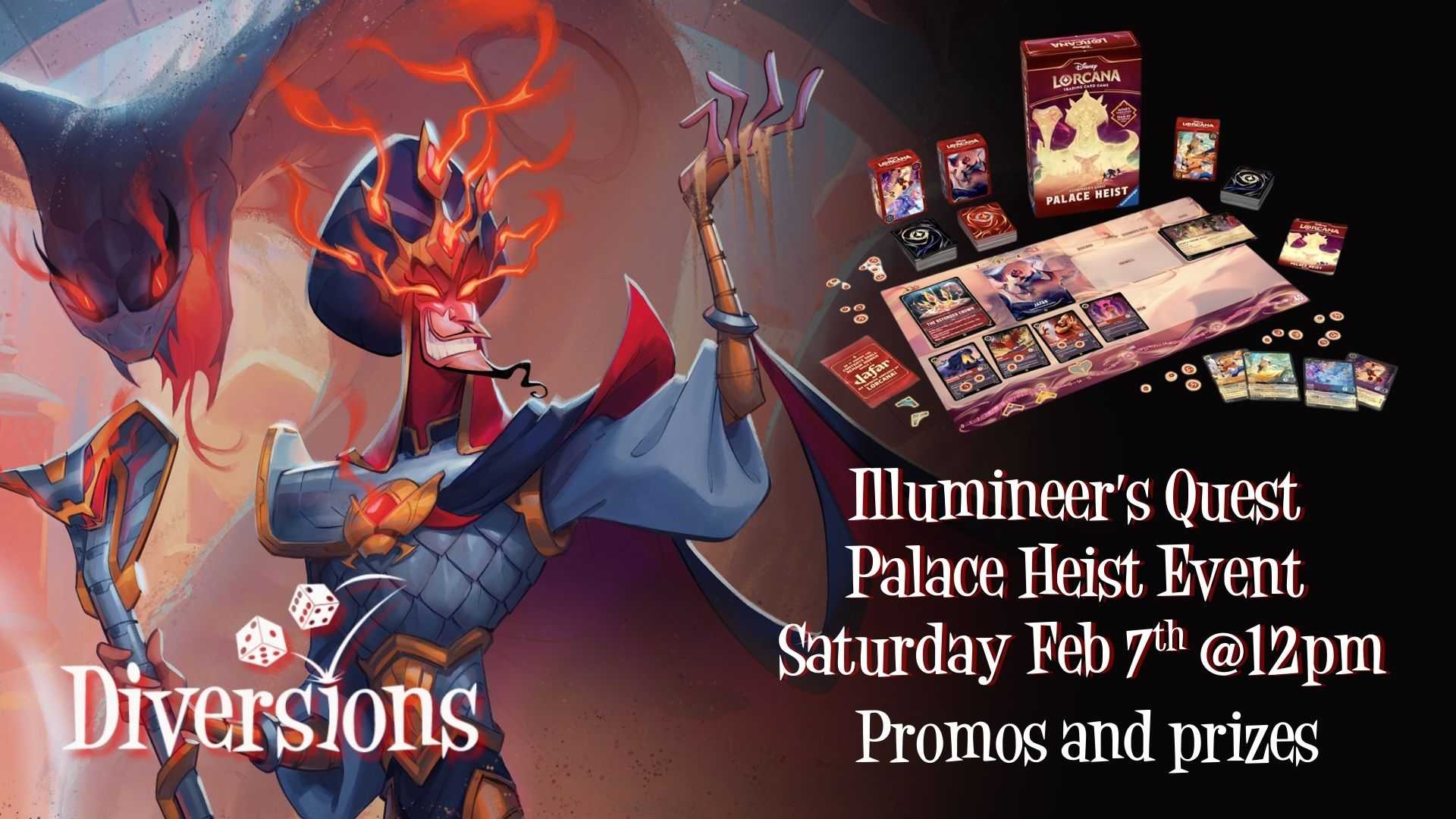 Join us on Saturday, February 14 for a Star Wars: Unlimited Store Showdown! This tournament starts at 10:00am. Doors at 9:00am. >>Registration & Check-In<< Registration/check-in at Diversions on Saturday, February… Join us for a monthly D&D session! This is a 3-hour session for all experience levels. Please bring your own dice and pencil; the DM will have pre-generated characters, or… |