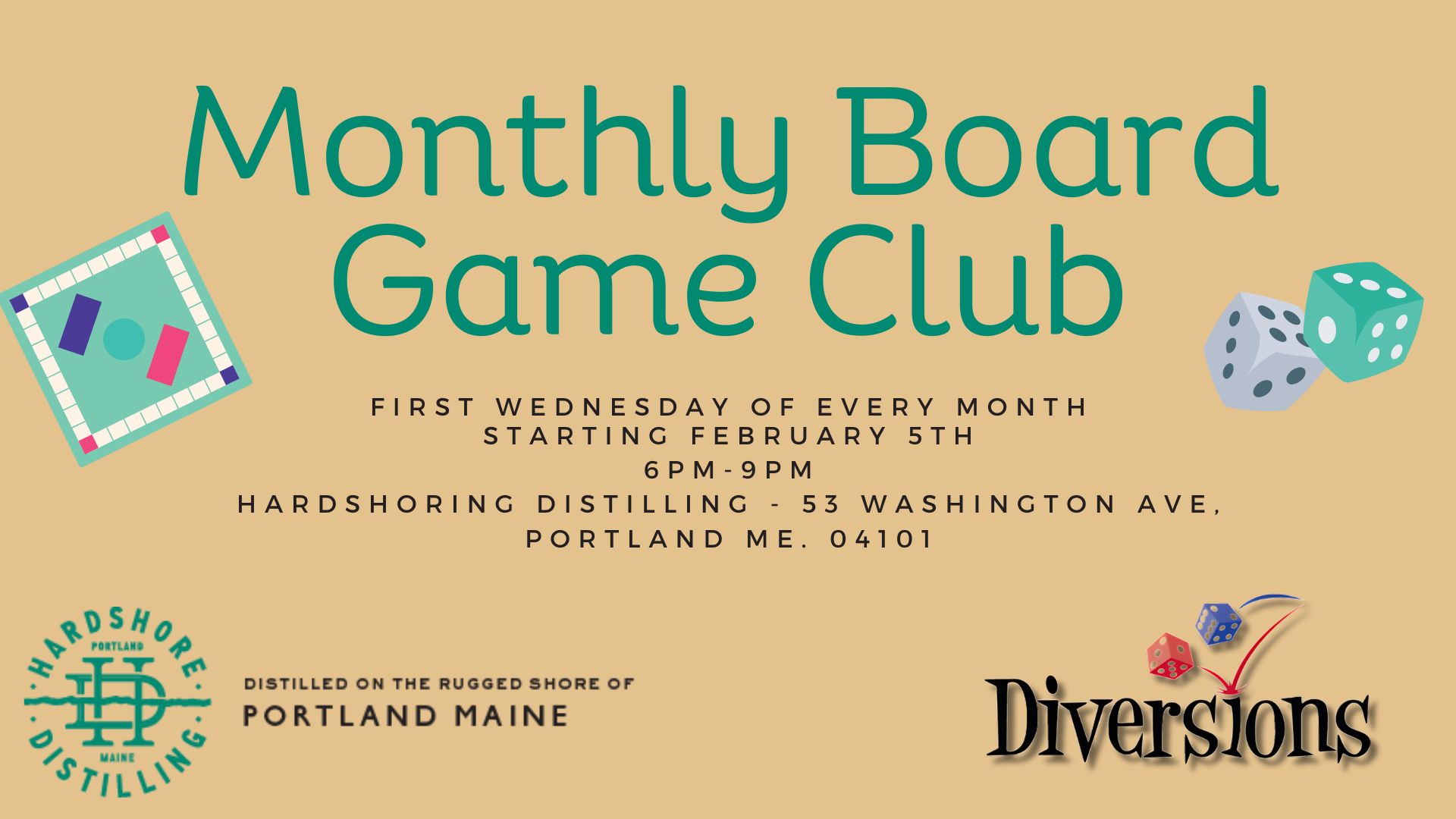 Hardshore Distilling 53 Washington Ave, Portland, ME, United StatesJoin us for our new monthly board game club at Hardshore Distilling! How it Works:Starting on February 5th, with an open play gaming session, we'll meet on the first Wednesday…
